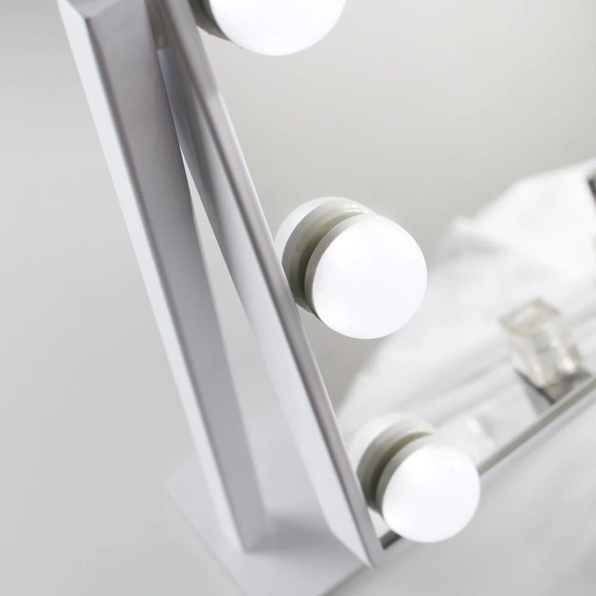 Verander jouw kaptafel in je eigen beauty salon met deze schitterende Hollywood verlichte visagie-spiegel. Beauty specialisten over de hele wereld zweren bij de elegantie en stijl van deze luxe spiegel. Voel je als een professional en breng make up nauwkeurig aan met de schitterende helderheid van de LED-verlichting. Met deze spiegel garandeer je jezelf elke dag van de perfecte make up en een volmaakte look. Deze Hollywood spiegel is het perfecte model voor elke kaptafel. Door het handzame formaat kun je het makkelijk verplaatsen en in elke richting draaien. Plaats deze prachtige spiegel tussen je make up als de ultieme accessoire.