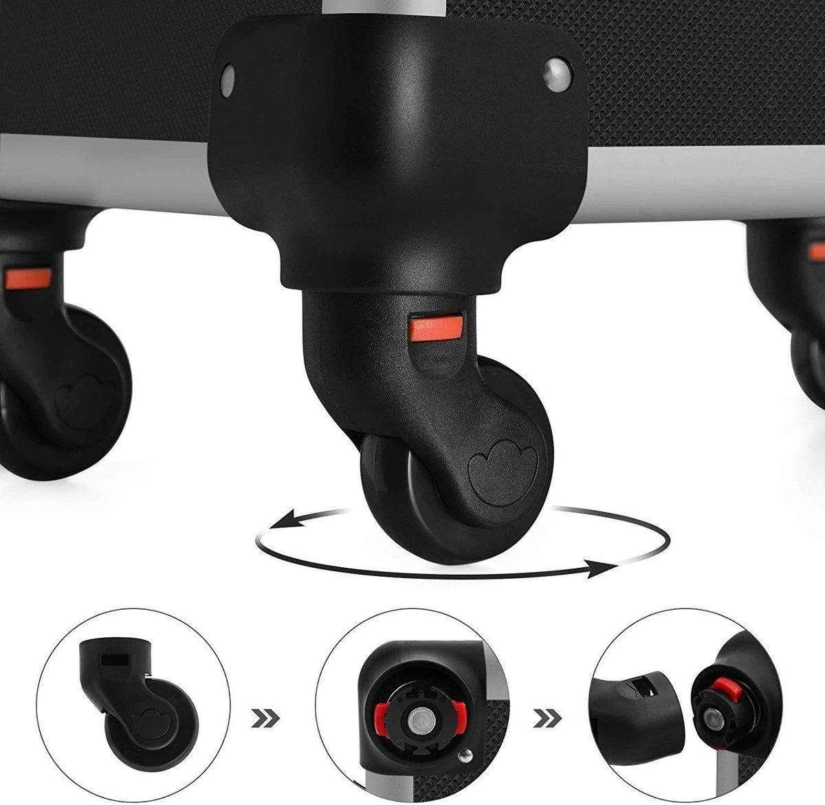 De versterkte zeshoekige telescopische handgreep is stevig en kan individueel worden aangepast aan uw maat. De koffer kan ook in elke richting worden verplaatst door de 4 universele rollen
